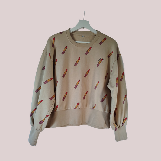 Lipstick Print Puff Sleeve Sweatshirt
